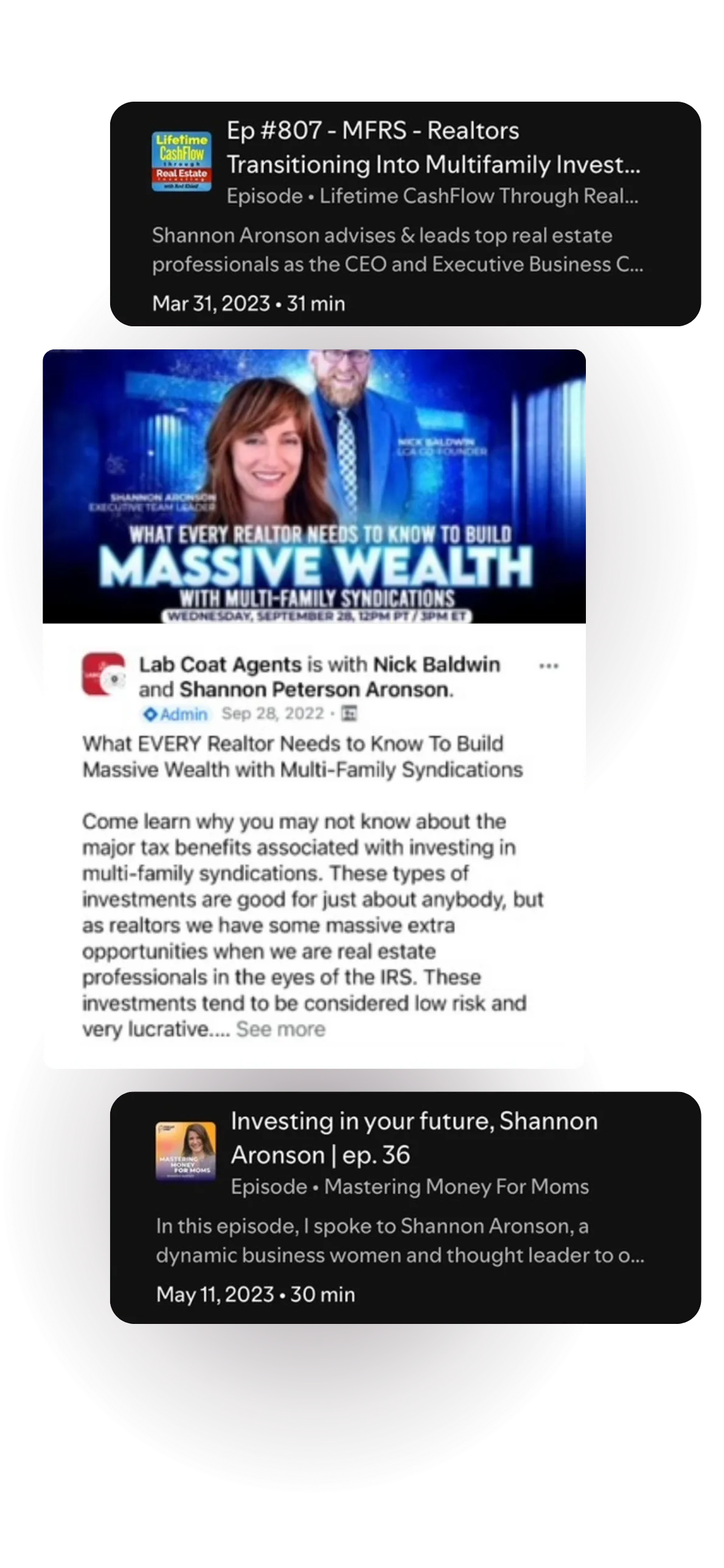 As a real estate investor for more than 20 years, Shannon has invested in over $250M worth of multi-family properties. In 2022, she co-founded WAAV RE to provide a platform through which she could share opportunities and guide others in investing in real estate passively.